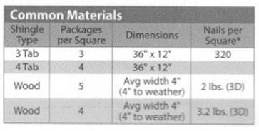 - Multiply the squares by the number of bundles per square (or see the table Below, or manufactures instructions for quantity)