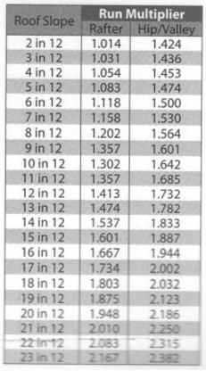 - Identify the multiplier that corresponds with the roofs slope.