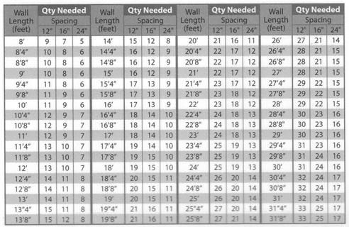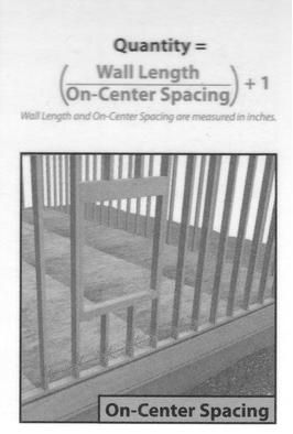 - Divide the length by the "on-center" spacing (in inches) and round to the next whole number.