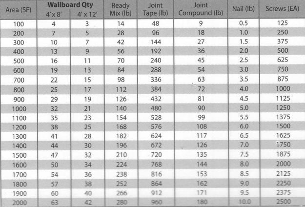 - Calculating Wall Studs, Drywall, Ready Mix, Tape, Joint Compound, Nails & Screws